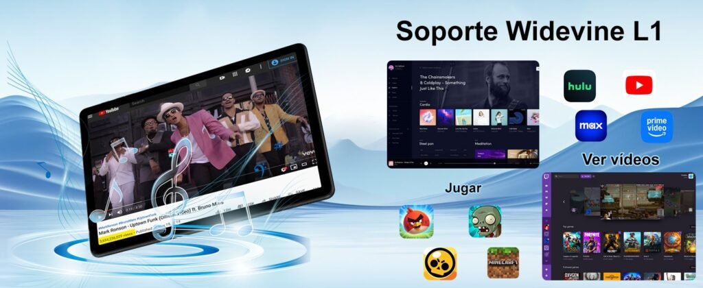 【10-Inch Display】The 10-inch (1280×800) display can stream your favorite 1080P HD content on Netflix, YouTube, HBO, or Amazon Prime Video with Widevine L1 certification for smooth playback.
